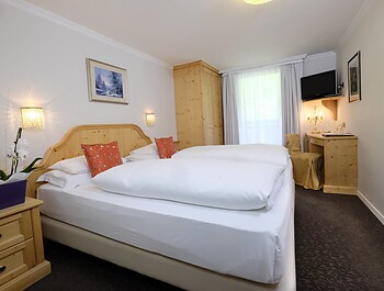 Doppelzimmer für zwei Personen, komfortabel eingerichtet, mit der Möglichkeit in einigen Zimmern ein drittes Zustellbett hinzuzufügen. Mit Bad oder Dusche, Fön,...